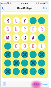 > From the main gallery screen select the CaseCollage you would like to use. Select print at the bottom right of the screen.
